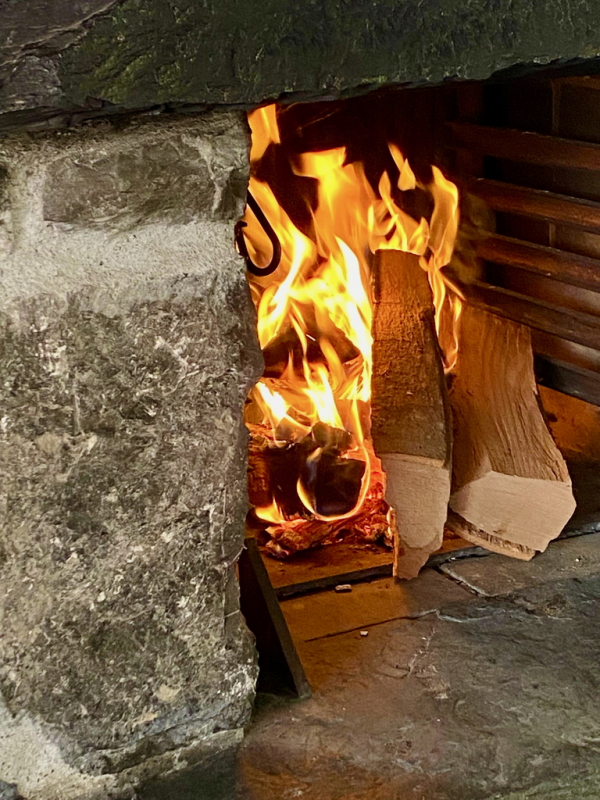 Feuer an, es geht los! Noch fehlt das Fonduebrot! Hanna greift in den Korb und reicht die von ihr liebevoll gebackenen Brotfladen. Still wird’s im Ofehüsi, vom Kamin her knistert es leise.